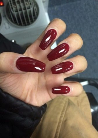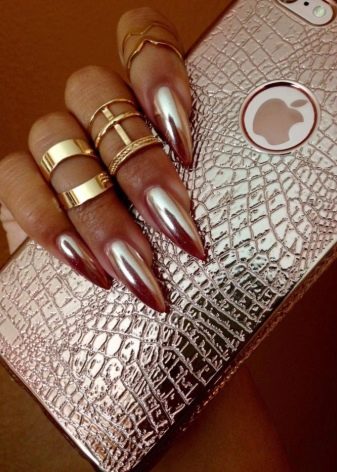 Smuk manikyr er et design, der ikke ser trodsig ud og aggressiv, men tværtimod indånder femininitet og status. For ikke at sænke det er det værd at øjeblikkeligt fjerne skarpe negle fra prioritetslisten. Naturligvis kan de se organisk i bugten af repræsentanten for ungdomssubkulturen i protestplanen. Dette er dog en mulighed ad gangen, og store negle ser ikke ud som en dekorering af billedet, men skræmmende.