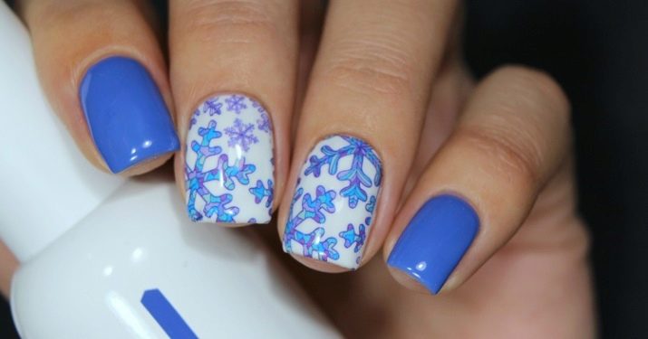 Med vinterens fremkomst bliver tonerne af gelpolver roligere, tegningerne skal afspejle naturens faldende søvn. Selvfølgelig kan det være en række snefnug, frostede mønstre, der efterligner frosne vinduer. Med udskrifter kan du slå teknikken med brudt glas og imitere vandpytter frosset fra kulden. Du kan tegne frosne blade. En af de populære tegninger i dag er et strikket stof. Til juleferien er tryk med hjorte og skandinaviske mønstre samt maling af snedækkede grangrene perfekte.