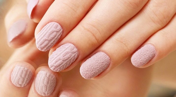 I hjertet af pulver teknikken manikyr lagt udgydelse af tørret gel polish med specielt akrylpulver. Faktisk er dette den samme kombinerede manikyr, fordi grundlaget for designet kan være en gradient, jakke eller klassiker. Imidlertid betragtes det enkle design af negle med akryl sand nu som rustikt, og derfor bruges sådant materiale oftere i dag til at tilføje volumen til det mønster, der anvendes af gelpolver. Uanset om det er strukturen i et strikket stof eller filt-snefnug, ser en sådan manikyr utroligt imponerende ud.