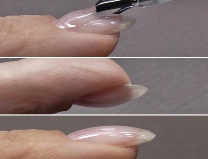Som nævnt ovenfor er metoden til anvendelse af værktøjet helt afhængig af efterfølgende mål. For eksempel, hvis en korrektion eller negleforlængelse udføres, skal basen påføres med et tyndt lag, mens man prøver at skabe roterende bevægelser med en børste. For at bringe pladerne på linje, skal midlet imidlertid påføres i flere trin.