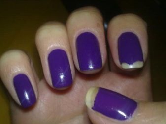 Manikyren varer ikke længe, hvis du påfører olie på neglebåndet, før du begynder at arbejde. Olien skaber et meget fedtigt lag, det er vigtigt kun at bruge et affedtningsmiddel, mens olien påføres helt i slutningen af arbejdet. Hvert lag med lak skal være meget tyndt, så du skal tage lidt fra flasken. Nogle producenters lakker tører muligvis ikke ud eller udtørrer ujævnt og danner knoller. Belægningen kan endda sprede sig en gang i kutikulaområdet.