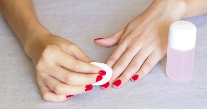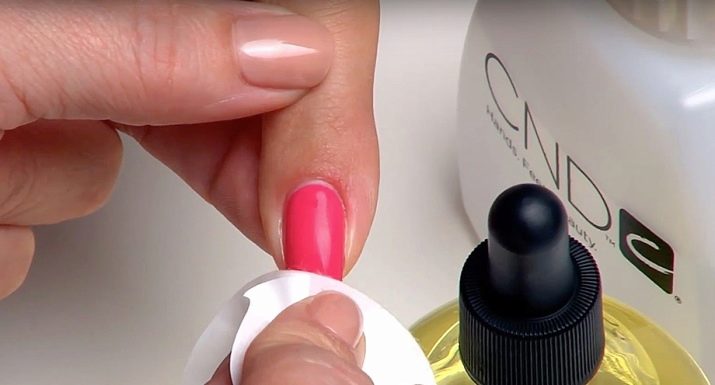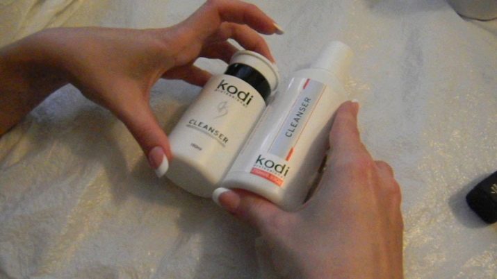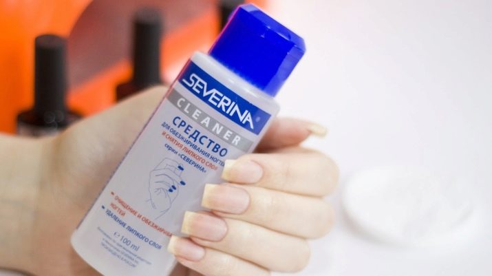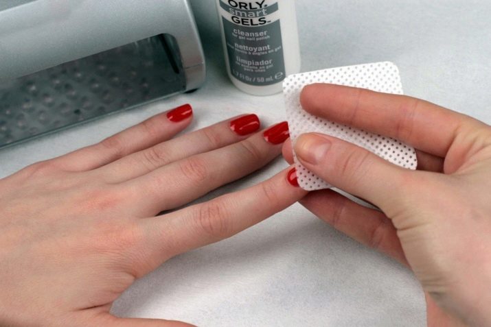For at udføre affedtningsproceduren fugtes et fnugbind serviet med en clinser og aftørres med en belægning.Det er vigtigt at bruge specielle visker, ikke svampe eller bomuld: efter forarbejdning på gelpolering eller topcoating kan der forblive hvide hvide partikler, hvilket vil ødelægge indtrykket af en smuk og nøjagtig manikyr.
