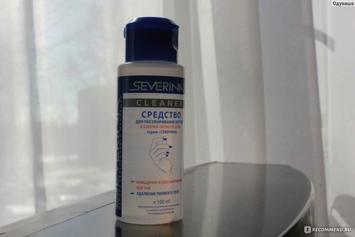 Mere overkommelige muligheder tilbydes af mærkerne Ra Nails Cleanse, EF Exclusive Cleanser. De fjerner det klæbrige lag fra overfladen på gelpolitiet ikke mindre omhyggeligt og sikkert for huden på hænderne og overfladen på neglene. Til hjemmebrug kan du vælge Severina, ORLY, IBD, Harmony. Disse rengøringsmidler er budgetmuligheder for professionelle affedtningsmidler.