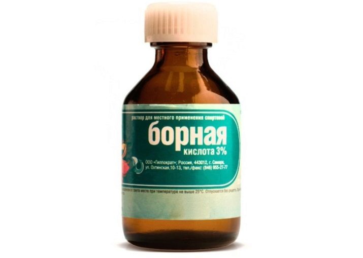 Hvis du ikke fandt enkel alkohol i medicinskabet eller på det nærmeste apotek, er en alkoholisk opløsning af borsyre egnet. Effektiv medicinsk rengøringsmiddel til en billig pris.