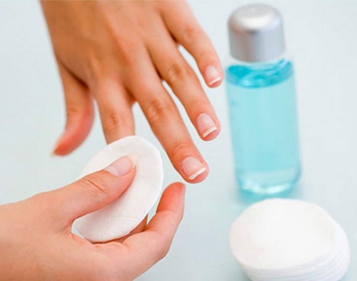 Det fjerner let naturligt fedt fra overfladen, som er produceret af huden og en fedtet film på negle fra kosmetik. Derudover rengøres neglene grundigt for alle slags forurenende stoffer. Dette vil med fordel påvirke belægningens kvalitet. Mange alkoholopløsninger er egnede, det vigtigste er at sikre sig, at de ikke indeholder fedt. Olier er en helt unødvendig komponent til kvalitetsforberedelse af ringblomster. Gelpolering lægger jævnt og klæber perfekt til negle, hvis produktet er valgt korrekt.