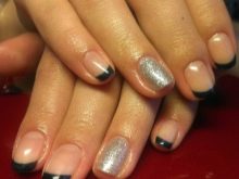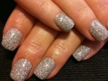 - Med gnister. Succesligt og hurtigt kan du dekorere dine negle med gnister. De skaber en festlig atmosfære, fremhæver din stilfulde bue. Du kan dekorere både hele neglepladen og dens del og lægge de skinnende partikler langs smilelinjen.