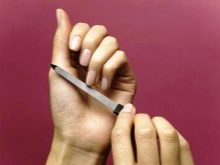 - Giv derefter den ønskede form til neglene med en saks. En neglefil skal omhyggeligt bringes til perfektion. Arkér negle i en retning, så neglepladen ikke delaminerer.