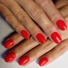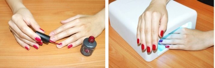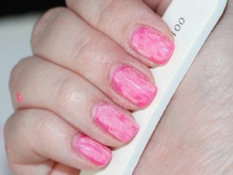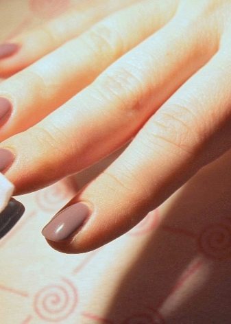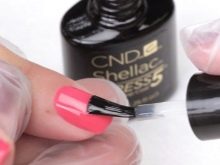 - Shellac lå ujævn. Det er værd at dække neglepladerne med et tyndt lag. Først da vil manikyren se elegant ud og skabe en jævn, skinnende finish.