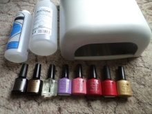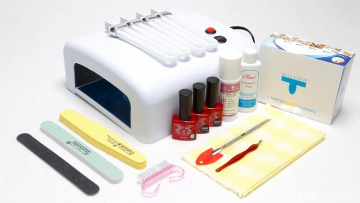 Hjemme har du brug for en speciel hård fil, skarpe tang, saks, neglebåndfjerner. Du kan også købe en speciel børste for at børste støv fra negle. Du har brug for en affedtningsmiddel for at forberede neglepladen til arbejde. For at polymerisere hvert lag, skal du få en ultraviolet lampe. Du bliver også nødt til at købe shellak i forskellige toner.
