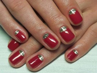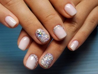 - Rhinestones. Rhinestones giver nåde og nåde. De er længe blevet elsket af alle pigerne. Det vigtigste her er ikke at overdrive. Dekorer ikke alle negle med talrige mousserende sten. Det vil se usmageligt ud. Det er bedre at fokusere på en finger og forsigtigt understrege billedet.