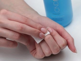 Før du begynder at skabe en smuk og stilfuld manikyr, skal du fjerne den gamle coating. For at fjerne den forrige shellak skal du bruge et specielt værktøj. Det kan købes i en professionel butik. Til at begynde med skal du forberede bomuldspuder og firkanter lavet af folie, hvis størrelse skal være optimal for hver finger.