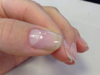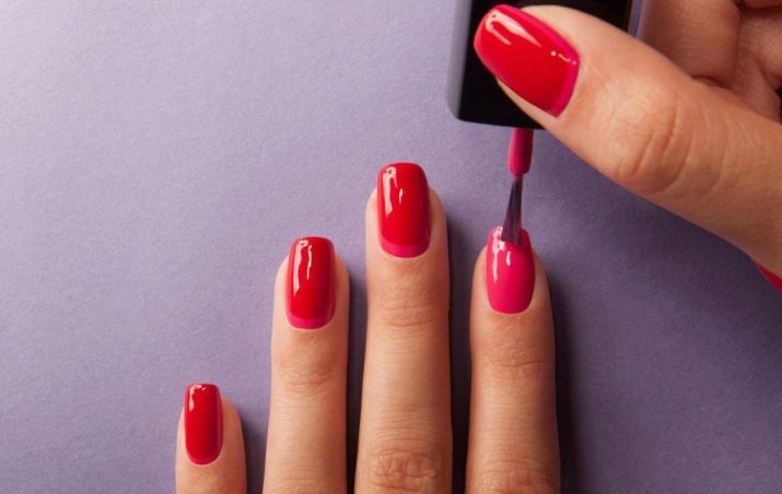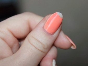 Hvis neglen knækkede, er den sikreste måde at fjerne belægningen og justere neglepladen. Derefter er det allerede muligt at overtrække overfladen med shellak af den ønskede skygge. Hvis du har eksfolierende negleplader, skal de styrkes med specielle midler.