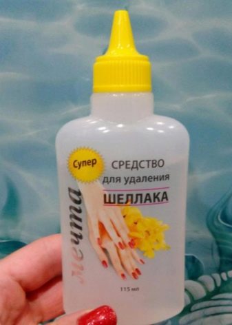 Derefter behandler vi neglene ved hjælp af en buff. I sidste ende skal du lave et bad til hænderne og anvende en nærende creme. Således kan du derhjemme klare den gamle belægning derhjemme.