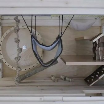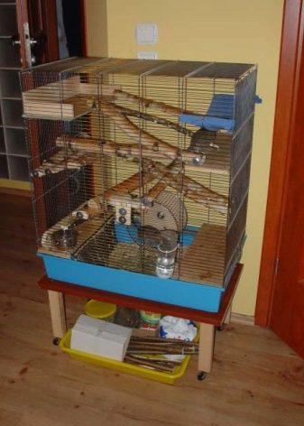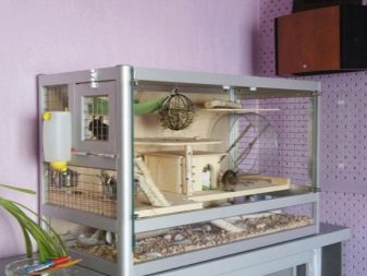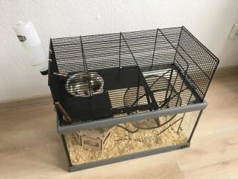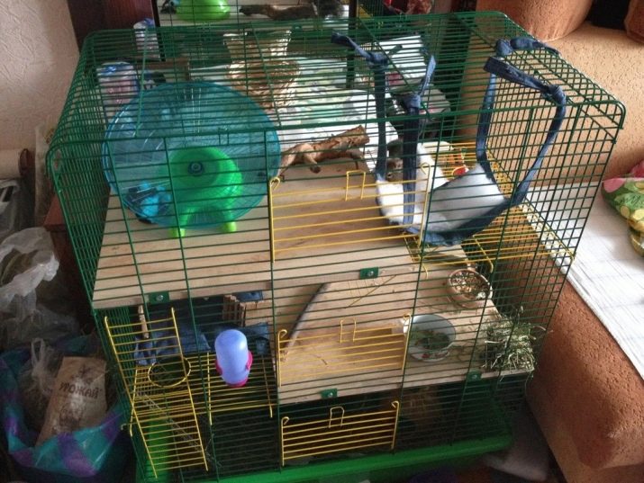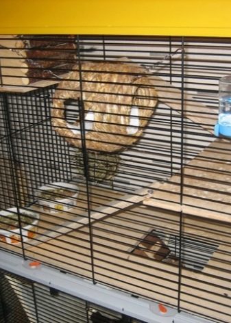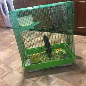 Hvis du ønsker, at dit kæledyr skal forblive sundt og aktivt, skal du vælge et bredt og ret højt bur, så ikke kun et hjul passer ind i dette hus, men også avsatser til klatring, en hængekøje eller liggeunderlag, godbidder, mad, spån og andet nødvendigt legetøj og tilbehør. Som bunden af buret med metalstænger betragtes en plastbakke som en fremragende løsning.
