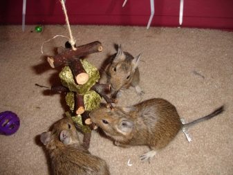 Mange degus som metalhjul med tværstænger, men kun på samme tid skal du nøje overvåge dit kæledyr for at sikre dig, at det ikke skader dine ben. Grenerne af ahorn eller frugttræ klatrer behageligt og komfortabelt til en højde af degu. En stor, dyb kasse fyldt med blød sandjord giver et sted at grave.