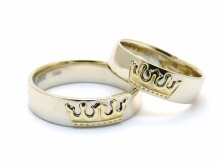 Vielsesringe i form af en krone har en dobbelt betydning for de nygifte: han er kongen i hendes øjne, og for ham er hun dronningen, og sammen er de rige på lykke og kærlighed stærk som guldkærlighed, familie.