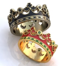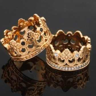 Dette smykke er til dem, der ønsker at se uafhængige og kongeligt stolte ud. Sådanne ringe er ikke ualmindelige i dag, de kan findes i en hvilken som helst smykkesalon eller kontakte håndværkere, der vil lave en eksklusiv ring til hende og også for ham.