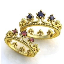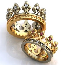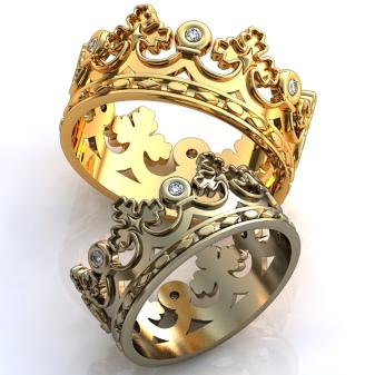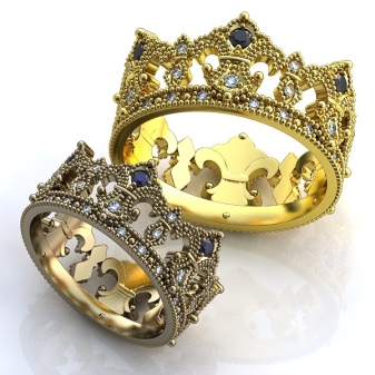 For mænd skal smykkene se solide ud, mens de understreger ejerens personlige egenskaber: hans ro, selvtillid og styrke. Derfor er det bedst at vælge et produkt med et minimum antal sten. Samtidig skal kronespidsen være større. For mænd vil ringe, hvis krone ligner en rigtig, være en ideel mulighed.