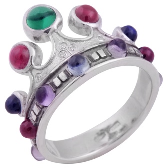 Juvelerere forsøger desuden at dekorere kroner med diamanter. For nylig, mere og mere ofte kan du finde rubiner, safirer, smaragder, topaser. Stenene passer perfekt sammen med den hvide farve på metallet og tilføjer smykker ekstra luksus.