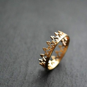 Hver kvinde ønsker at ligne en dronning på sin bryllupsdag. For at gøre dette kan du bære en smuk storslået kjole, dekorere dig selv med et luftslør, men ringen i form af en krone vil give dig mulighed for at føle dig selv valgt i øjnene på din mand til slutningen.