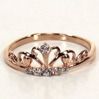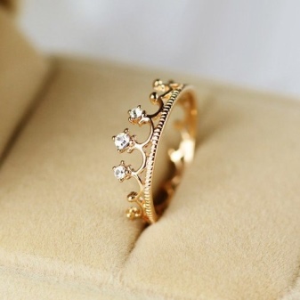 Juveler opdeler betinget sådanne ringe i tre lige store og komplementære dele: bunden, kronetænderne og deres toppe. Basen er hoveddelen, så de prøver at dekorere den med store og små sten. Dette gør produktet elegant og luksuriøst. Selve tænderne kan laves med skarpe bøjninger eller i form af glatte linjer, der ligner en bølge i form. Her forsøger juvelerere at indsætte små sten eller perler. Men kronetoppen ligner en trefoil.