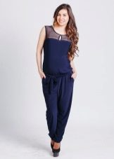 Jumpsuit lavet af materiale til dragter adskiller sig fra tidligere modeller, da det kun er egnet i visse perioder. Det ser stiligt ud og er velegnet til påklædning til formelle begivenheder. Der er også en sænket talje med en behagelig understøtningslist til maven. Nogle piger kan ikke lide bukser eller foretrækker i åbningen varme mere åbningstiler. For dem tilbydes en model af overalls med et nederdel. Princippet er det samme som for andre modeller af overalls: en lav talje, hvor der er en indsats med elastisk gummi. Det giver dig mulighed for at justere den krævede lydstyrke. Stropper holder pålideligt en løstsiddende jumpsuit.