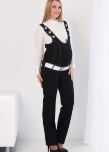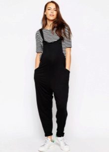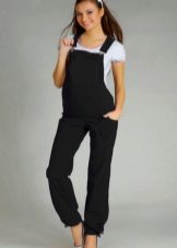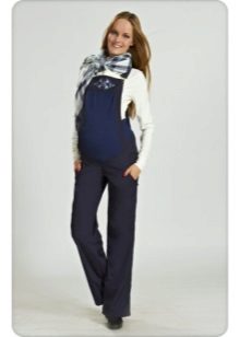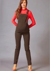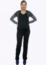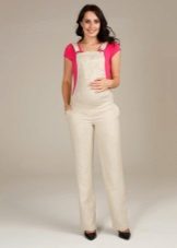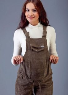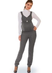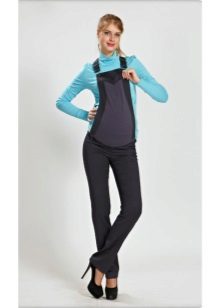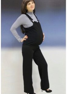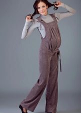 Overalls - transformatorer til gravide kan fremstilles af stoffer som jeans, velour eller fløjlstof. Hvad der er godt ved sådanne ting - når du har løsnet den øverste del, kan du bære bukser eller capri på egen hånd. Et bredt elastisk bånd vil under alle omstændigheder pålideligt understøtte en gravid mave. I sådanne stoffer er det behageligt i køligt vejr eller i lavsæsonen.
