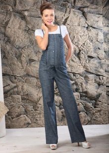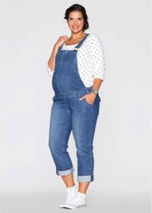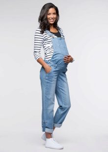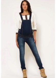 Overalls er lavet af forskellige materialer. Det mest almindeligt anvendte denim. Det kan sommermodeller og varmes op. Sådanne overalls er praktiske til gåture og shopping for et fremtidig medgift til en nyfødt. Denimmodeller betragtes som de mest praktiske: behageligt at have på, ikke let snavset, velegnet til næsten enhver sweatshirts og t-shirts.