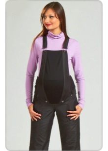 Under maven er der et elastisk bånd, der understøtter det pålideligt. Overalls beskytter den gravide kvindes mave og korsryggen i dårligt vejr og forhindrer dem i at blive kolde. Tøj følger linjerne i figuren af en gravid kvinde, så fremtidige mødre føler sig godt tilpas i det.