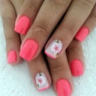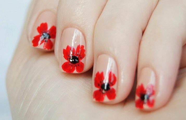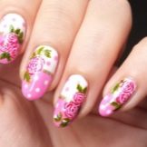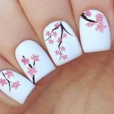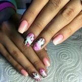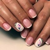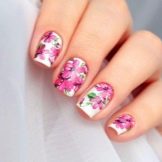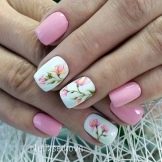 Dette er et rigtigt hit i forår-sommer sæsonen, fordi det netop er de blomstermotiver, der perfekt matcher stemningen i naturen. Det blev tidligere antaget, at blomster ser bedre ud på langstrakte negle, men modetrendsne i den sidste sæson har modbevist denne erklæring. Blomstermanikyr passer perfekt til ethvert sommer look. Det anbefales at bruge lysere og lysere toner til udførelsen af et sådant design. Du kan prøve at eksperimentere med lyserød, nøgen, syrin, hvid, rød og gul.