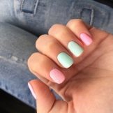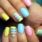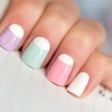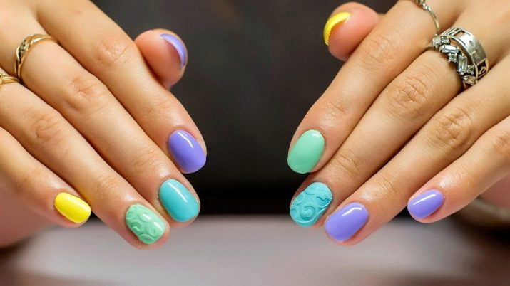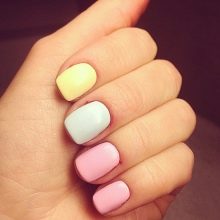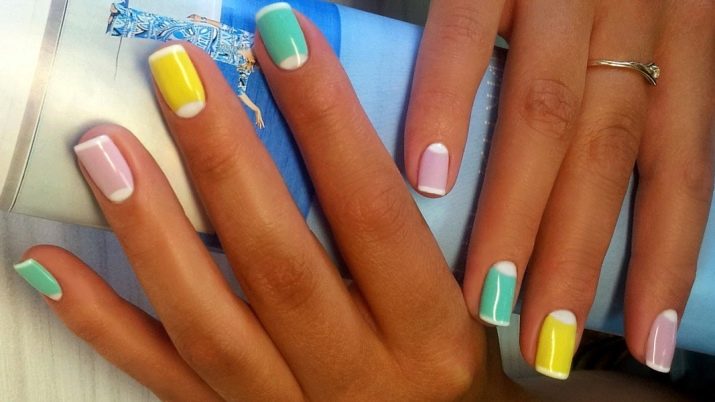 Almindelig manikyr tillader en kombination af forskellige nuancer på forskellige negle. Sommerversionen tillader endda en sådan dristig kombination: dæk alle søm med forskellige nuancer. I dette tilfælde er det bedre at vælge en nøgle, for eksempel pastel. Forskellige nuancer af en række er perfekt kombineret, for eksempel alle nuancer af gult eller lyserødt.