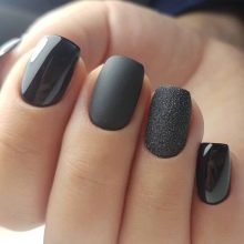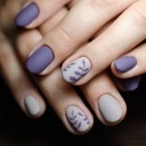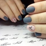 Det matte design på korte negle afspejler ikke farven, det ser fløjl ud og meget elegant. På korte negle ser både lyse matmuligheder og ekspressive rige farver lige så smukke ud. Glansbelægning kan være både klassisk og med spejleffekt. En kombination af blomster af samme serie med forskellige strukturer ser især interessant ud. For eksempel er det nok at påføre en blank coating på 1-2 fingre, så de andre er matte, så manikyren spiller med helt forskellige farver.