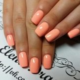 Dette er en næsten win-win mulighed for korte længder negle. Det er nok at vælge en moderigtig nuance, der passer til hudens farve og passer ind i billedets overordnede stil for at få effekten af velplejede hænder og en elegant komposition. Ensfarvet er perfekt til strengt forretningsudseende og hverdag. I dette tilfælde er der et valg mellem mat og blank finish.