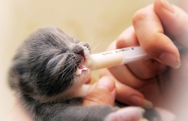 Indtast produktet ved hjælp af en sprøjte eller en speciel pipette. Blandingen hældes meget omhyggeligt, så babyen ikke kvæler. Kumælk er ikke egnet til killinger.Faktum er, at kattemælk består af 70% vand, den indeholder 11% protein og 3% lactose, fedtindholdet overstiger ikke 11% ..