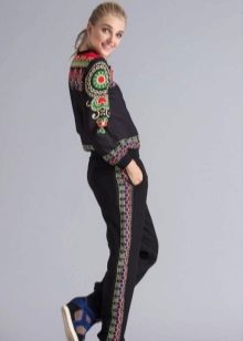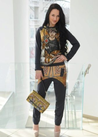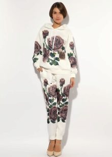 Til skræddersyning af træningsdragter bruges udelukkende naturlige stoffer som bomuld, uld og strik. For at give produkterne elasticitet vil en lille mængde syntetiske fibre, for eksempel elastan eller lycra, blive inkluderet i sammensætningen af materialet, så de ikke begrænser bevægelse, men bevarer deres oprindelige form. Den originale løsning var en kombination af bomuldsstof med blonder, som pryder forsiden af sweateren og sidesømmene på bukserne.
