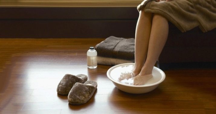 - Damp i et bad efter tilsætning af to teskefulde soda, havsalt, æble cider eddike til varmt vand (500 ml).