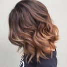 - Farvning af det meste af håret. Forreste krøller er helt tonede, resten er kun selektivt. I dette tilfælde er skyggerne tæt på hårets bundfarve.