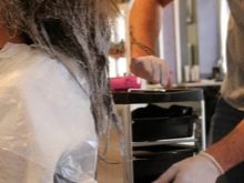 - Farvelægning sammensætning påført det øverste lag af hår, men ikke fra rødderne, men lidt lavere.