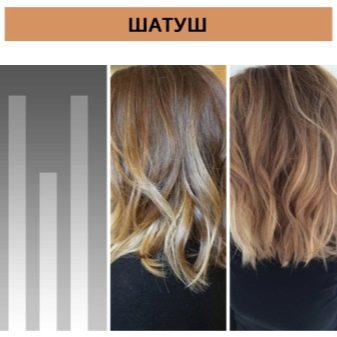 Shatushi ser bedst ud på mørkt eller mørkt blondt hår skulderlængde og derunder. På en kort klipning vil effekten af overfyldte nuancer være næsten usynlig, eller masteren vil simpelthen ikke være i stand til at foretage glatte overgange på grund af den begrænsede længde på håret. Og for en lys frisure er det meget vanskeligt at vælge 3-4 nuancer, der vil være mærkbar, det vil sige lettere end de vigtigste. Alternativt kan mesteren tilbyde dig at gøre håret mørkere i rodzonen.