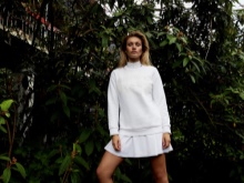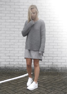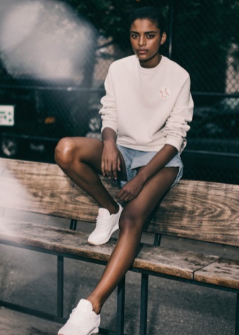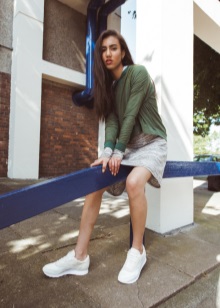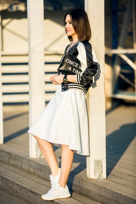 Vær opmærksom på kombinationen af Reebok klassiske sneakers med et midi nederdel. Du kan bære hvide sneakers med en almindelig creme-nederdel i let materiale. Føj en bombefly til dit billede og gå dristigt til festen.