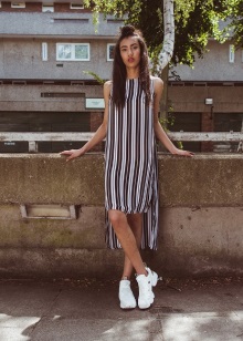 Fashionistas foretrækker at bære klassiske hvide ribbes sneakers med næsten ethvert outfit. Disse sko kombineres med en overdimensioneret kjole, høje jeans og en løs skjorte, afslappet stil, en let midi nederdel og andre ting.