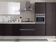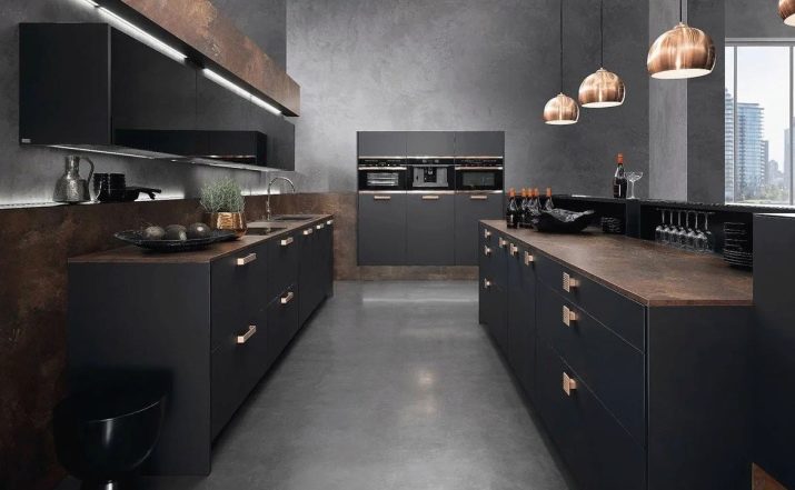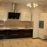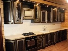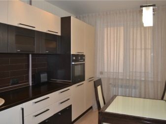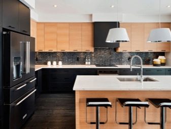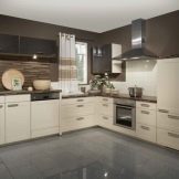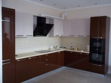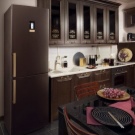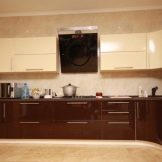 Men den sort og brun kombination er også ganske god. Det vigtigste er at arbejde på det professionelt og tankevækkende. Først da vil det være muligt at realisere planen fuldt ud, da kombinationen af to mørke toner kan se dyster ud. Det er vanskeligt at møde køkkenets sortbrune farve, selv i specielle kataloger. Psykologer bemærker, at den brune komponent i denne (som i enhver anden) kombination bør dominere.