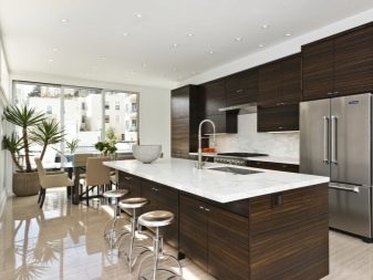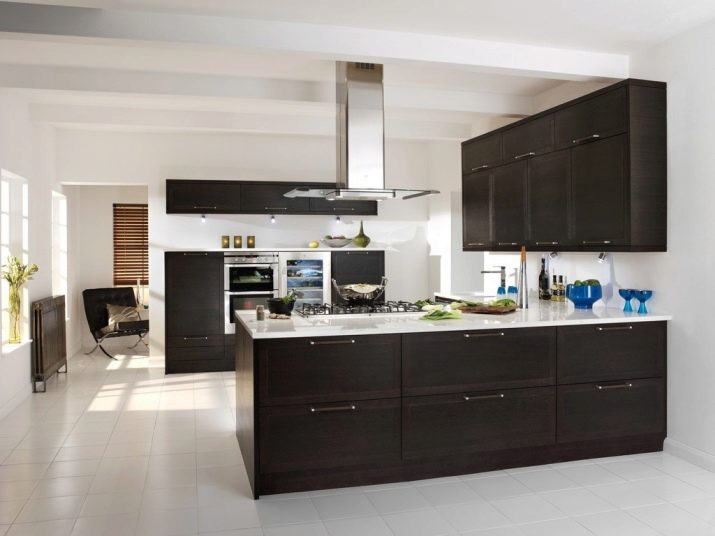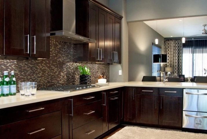 Du kan ofte høre, at hvide køkkener er enestående. Imidlertid kan mørke toner, inklusive brune, også bruges. Det vigtigste er, at alt skal gøres korrekt og dygtigt.