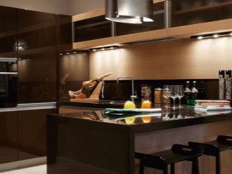 Brunt køkken kan serveres på den mest behagelige måde. I modsætning til hvad man tror, er en sådan farve på ingen måde kedelig i et godt designet interiør. Men baggrunden i brune toner er normalt ekstremt interessant. Blandt disse toner henledes opmærksomheden på sig selv: