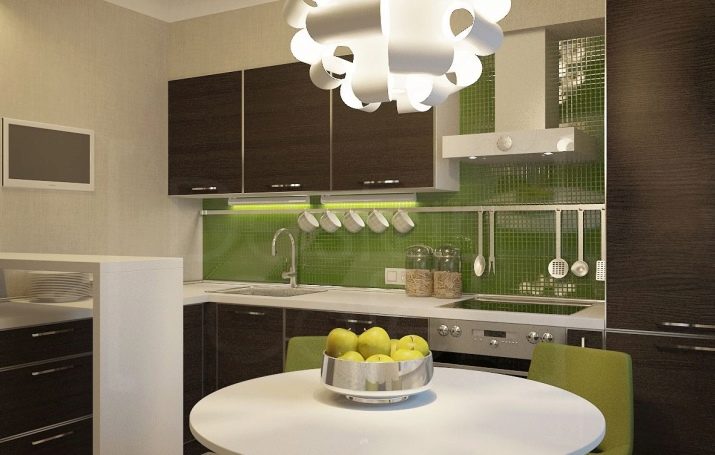 Kendere rådgiver i små køkkener at vælge en lysebrun maling. Andelen af mættede indeslutninger bør minimeres. Sådanne elementers rolle kan være: