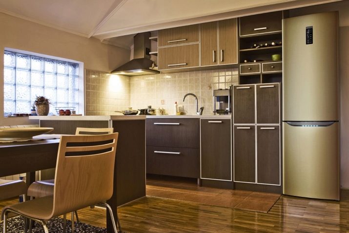 Hvis pladsen er relativt lille, anbefales det at bruge toner af cappuccino, let beige og mælkeschokolade. Og da det blev besluttet at bruge en helt ren brun farve, ville køleskabe med samme farve klare sig godt. Det er sandt, at omkostningerne ved sådanne løsninger er meget høje - nøjagtigt højere end når du vælger en klassisk hvid farve. Hoveddelen af sådanne modeller falder på mærker: