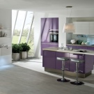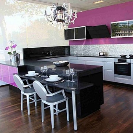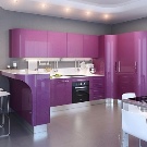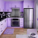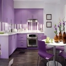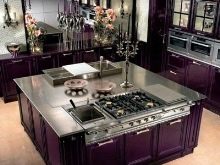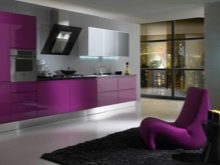 Når man designer et rum, foretrækker mange lyse farver, men glem ikke, at mørke eller lyse farver også passer godt ind i designet. Lilla farve vil være en fremragende mulighed for design af køkkenfaciliteter. I betragtning af at denne farve ikke er så almindelig i naturen, anbefales det at bruge den meget afmålt i udformningen af forskellige rum.