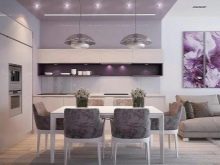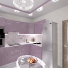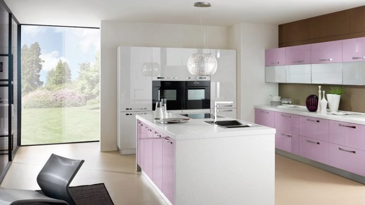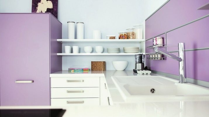 Lys lilla køkken vil være et ideelt sted til hyggelige aftensamlinger. Denne farve fremmer afslapning, udvikler kreativitet.