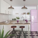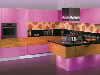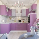 - Valget af lyserøde og lilla farver til køkkenet er heller ikke ualmindeligt. Typisk foretrækkes denne mulighed af unge piger og romantiske natur.