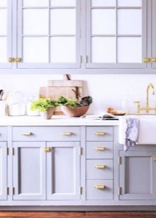 - En god mulighed viser sig, hvis du vælger top og bund i forskellige farver. I dette tilfælde kombineres den syrinede bund perfekt med en let top. Et sådant køkken kan tiltrække opmærksomhed med dets usædvanlighed og stil.